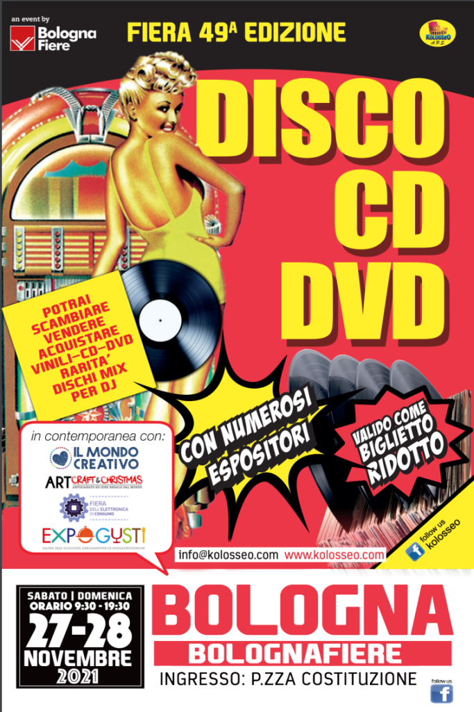 Riparte dal padiglione 35 di Bologna Fiere, in piazza della Costituzione, la Fiera del Disco e del Fumetto di Kolosseo. Sabato 27 e domenica 28 novembre – dalle 9,30 alle 19,30 – la storica associazione bolognese proporrà ai visitatori decine di banchi con migliaia di meraviglie tra cd, vinili, libri, albi, dvd… Il tutto in sicurezza, con stand distanziati e Green Pass.