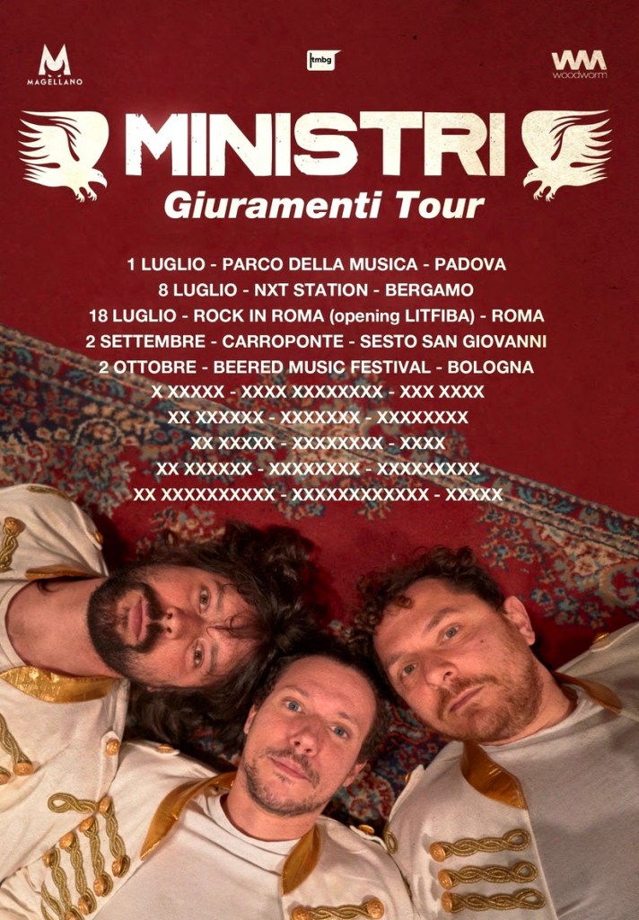 Reduci dal successo del tour primaverile nei club e dalla calorosa accoglienza ricevuta durante gli instore, occasione in cui hanno incontrato i fan per presentare il loro nuovo progetto discografico – GIURAMENTI, disponibile dal 6 maggio – i MINISTRI non si fermano e annunciano le prime date del tour estivo!