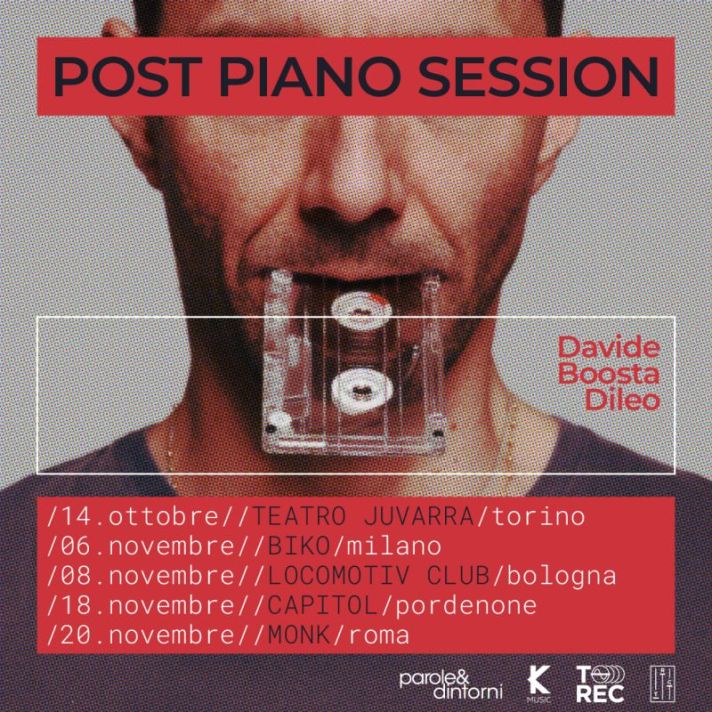 Dopo “LA STANZA INTELLIGENTE” e “FACILE”, Davide “BOOSTA” Dileo torna con un progetto discografico articolato in sei capitoli, in uscita tra settembre e dicembre. Il primo e il secondo dei sei EP “POST PIANO SESSION – Tape 1” e “POST PIANO SESSION – Tape 2” sono già disponibili in digitale.