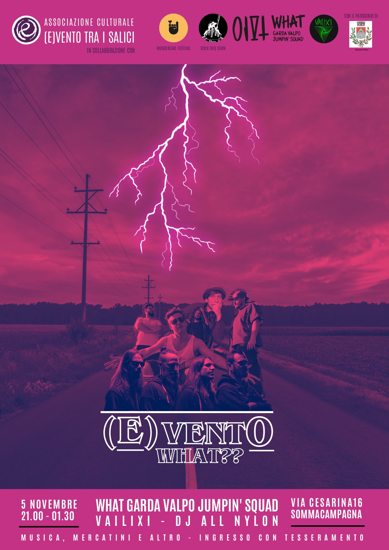 In collaborazione con le associazioni culturali e giovanili Wonderlake Festival di Lazise, Rock This Town di Peschiera del Garda e con il patrocinio del Comune di Sona, l’evento vedrà esibirsi le band Vailixi e What Garda Valpo Jumpin’ Squad e, in chiusura, Dj All Nylon. Durante la serata sarà presente un’area market con stand di artisti emergenti, artigiani, vinili e cd da collezione e realtà territoriali.