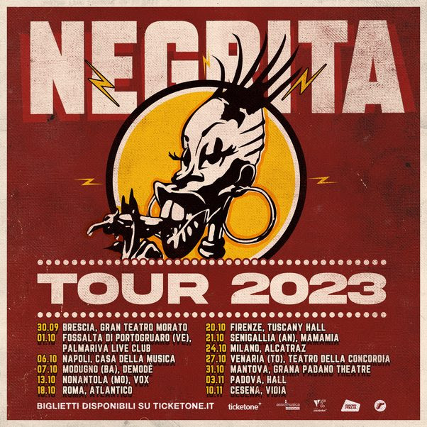 Dopo un tour acustico nei teatri durato 3 anni e culminato nel grande evento MTV UNPLUGGED NEGRITA, la band aretina torna a sorpresa live in elettrico nei club, per un lungo tour in cui riproporranno i brani cult del proprio repertorio.