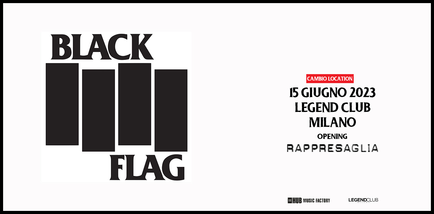 Per motivi indipendenti dall’artista e dall’organizzatore, il concerto dei Black Flag previsto per il 15 giugno allo Spazio Mil di Sesto San Giovanni si svolgerà al Legend Club di Milano sempre nella stessa data.