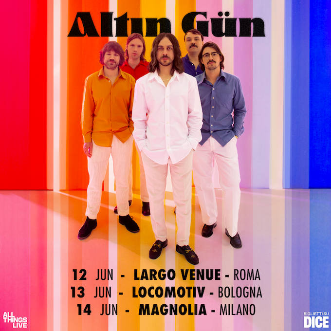 All Things Live Italy presenta ALTIN GÜN. La band, originaria di Amsterdam, che combina rock psichedelico, funk, synthpop, cosmic reggae uniti alle tradizioni della musica Anatolian e Turca, torna in Italia per tre imperdibili date il prossimo giugno: il 12 al Largo Venue di Roma, il 13 al Locomotiv di Bologna e il 14 al Magnolia di Milano.