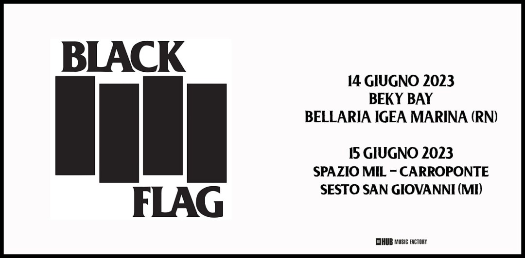 BLACK FLAG15 GIUGNO 2023 - LEGEND CLUB, MILANO (NUOVA LOCATION) CAMBIO LOCATION PER IL CONCERTO DI MILANO Per motivi indipendenti dall’artista e dall’organizzatore, il concerto dei Black Flag previsto per il 15 giugno allo Spazio Mil di Sesto San Giovanni si svolgerà al Legend Club di Milano sempre nella stessa data. Tutti i biglietti acquistati in precedenza restano validi. Biglietti disponibili su Ticketmaster.