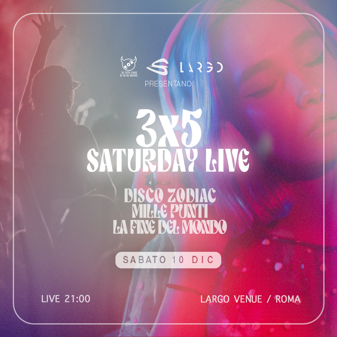 Largo Venue, Roma: il 10 dicembre va in scena la 3×5 Saturday Night, col meglio della musica emergente italiana