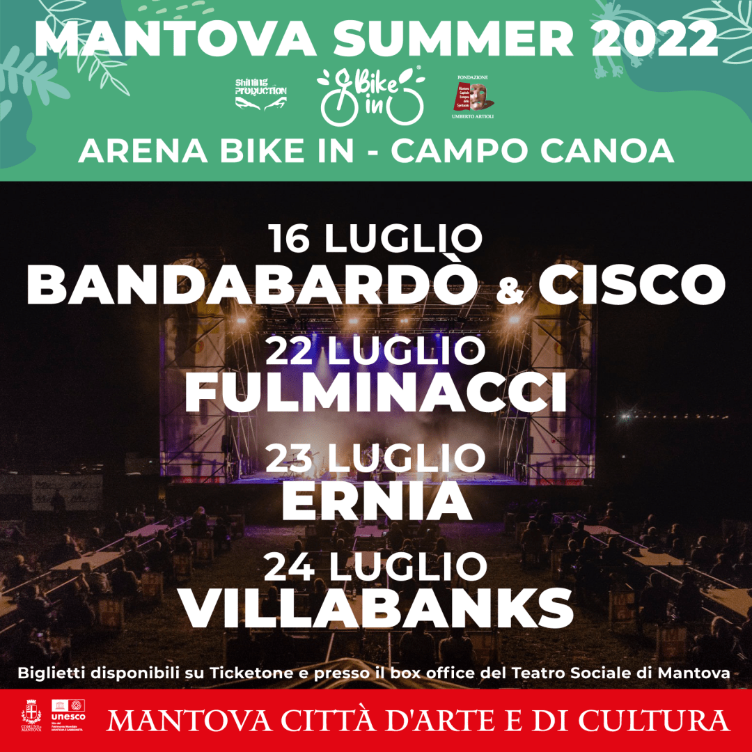 Arena Bike-in di Mantova: Bandabardò & Cisco, Fulminacci, Ernia e Villabanks tra i protagonisti del festival che si terrà dal 21 al 24 luglio