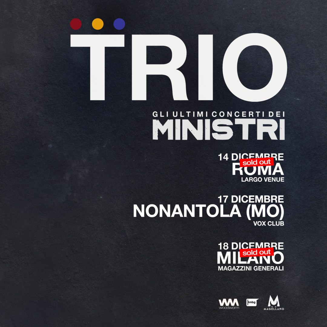 Dopo i sold out immediati a Roma(14 dicembre - Largo Venue) e Milano(18 dicembre - Magazzini Generali), i MINISTRI - bandche ha riscritto la storia del rock moderno italiano - annunciano una nuova data-evento per celebrare la fine di un capitolo della loro carriera: il 17 dicembre al Vox Club di Nonantola (MO).I tre concerti irripetibili dedicati ai fan sono il coronamento di 2 anni fatti di concerti … Leggi tutto Ministri: dopo il sold out delle due date annunciate, ne aggiungono una terza al Vox club di Nonantola (MO)